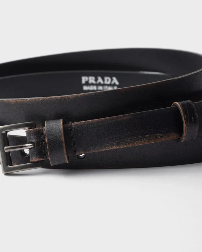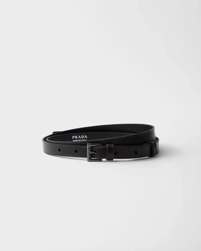 Sleek and Sophisticated, This Narrow Leather Belt is Completed with a Geometric Metal Buckle.