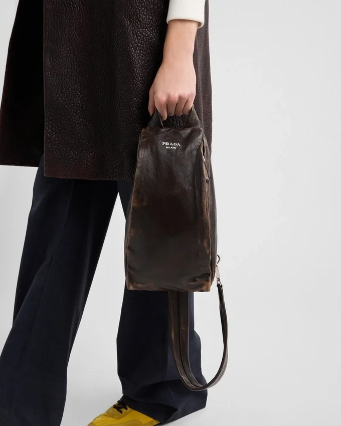 Modernist Shapes Define the Design of This Backpack Made of Soft Nappa Leather with a Worn Effect That Gives the Sporty, Functional Accessory a Refined Character.