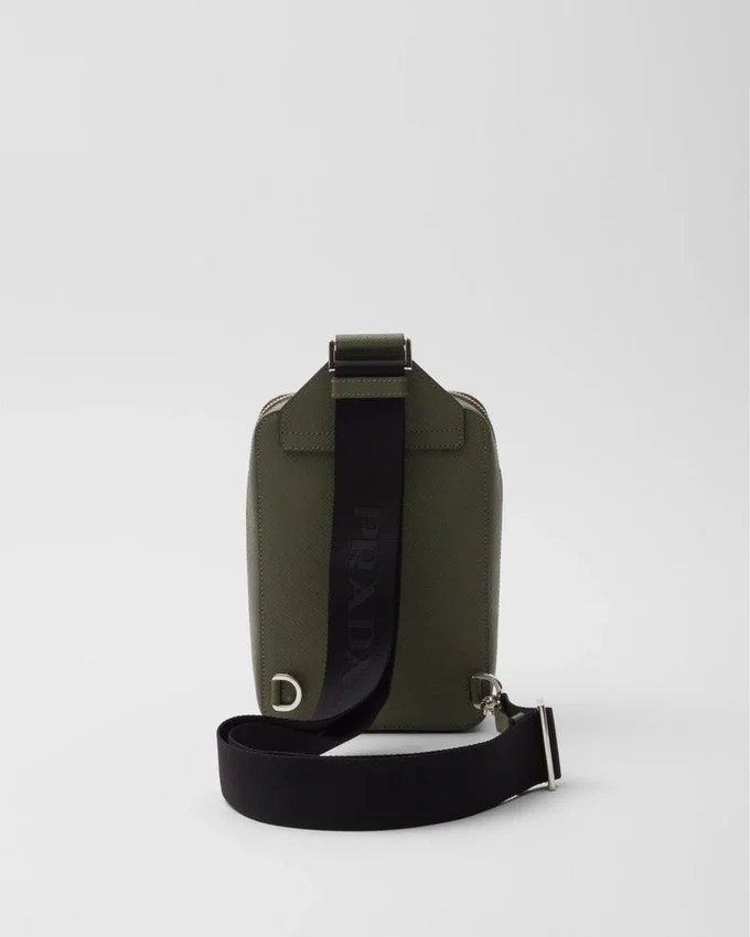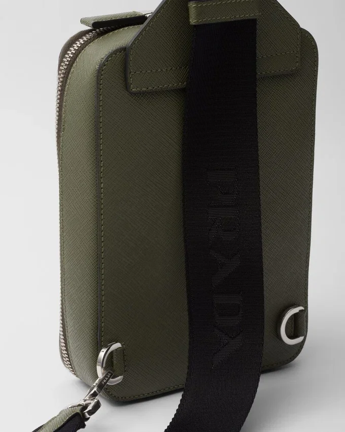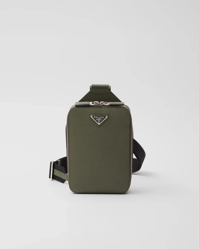 This Elegant Saffiano Leather Shoulder Bag with a Handle, Shoulder Strap, and Two Zipper Pockets Has a Sleek Silhouette.