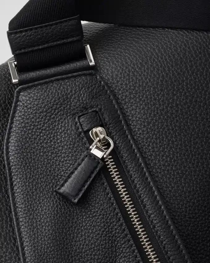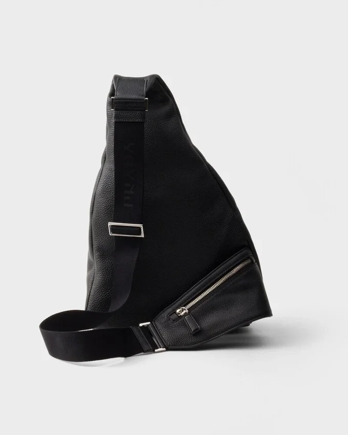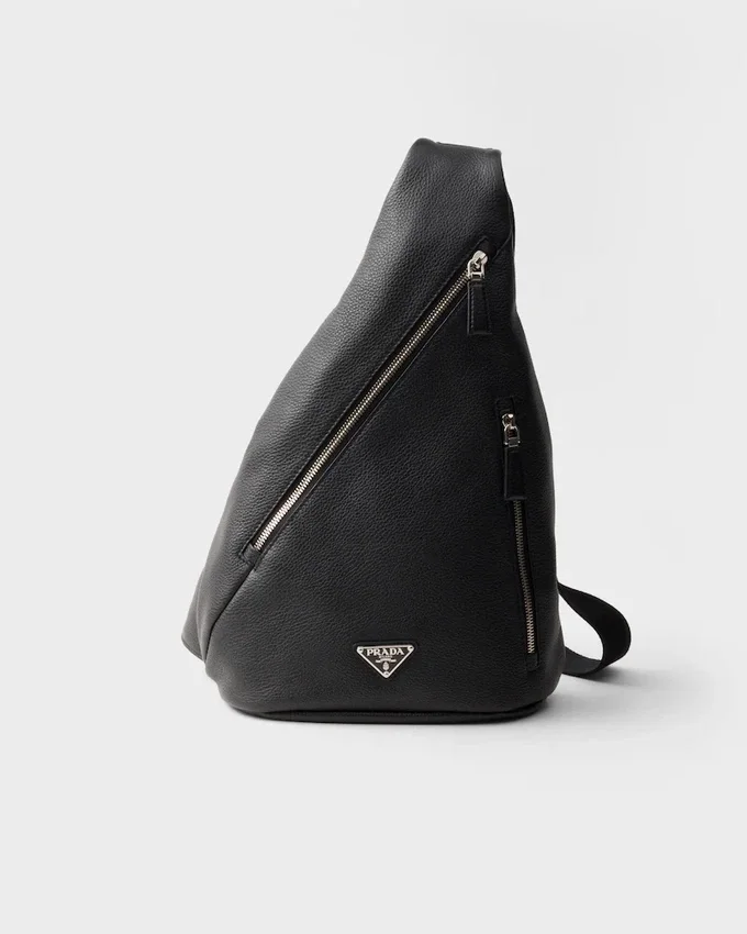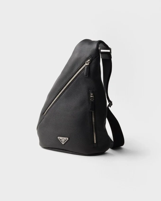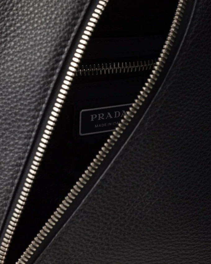This Leather Bag, an Expression of the Duality Inherent in the Prada Aesthetic, Plays with Contrasts and Minimalist Lines That Define the Contemporary, Hybrid Design. The Shoulder Bag with Several Zipper Pockets is Decorated with the Iconic Triangle Logo.