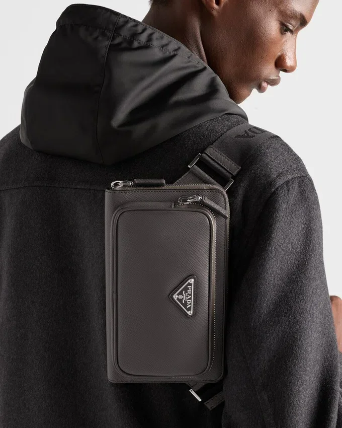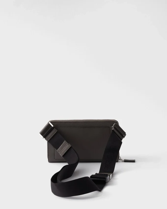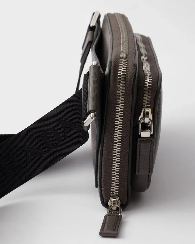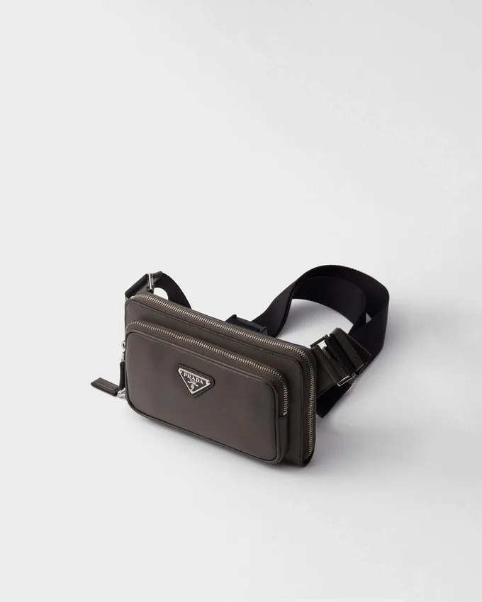 The Hybrid Concept That Pervades the Prada Narrative is Reflected in This Belt Bag with Modern Allure. Sleek, Elegant Lines Combined with Fine Saffiano Leather Create a Dialog with Details from Technical Sports World, Enriching the Design of the Accessory with New Aesthetic Visions. The Iconic Enameled Metal Triangle Logo Decorates the Bag on the Front.