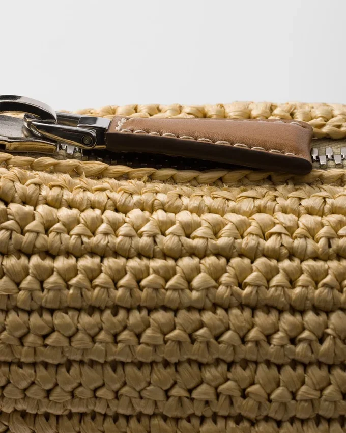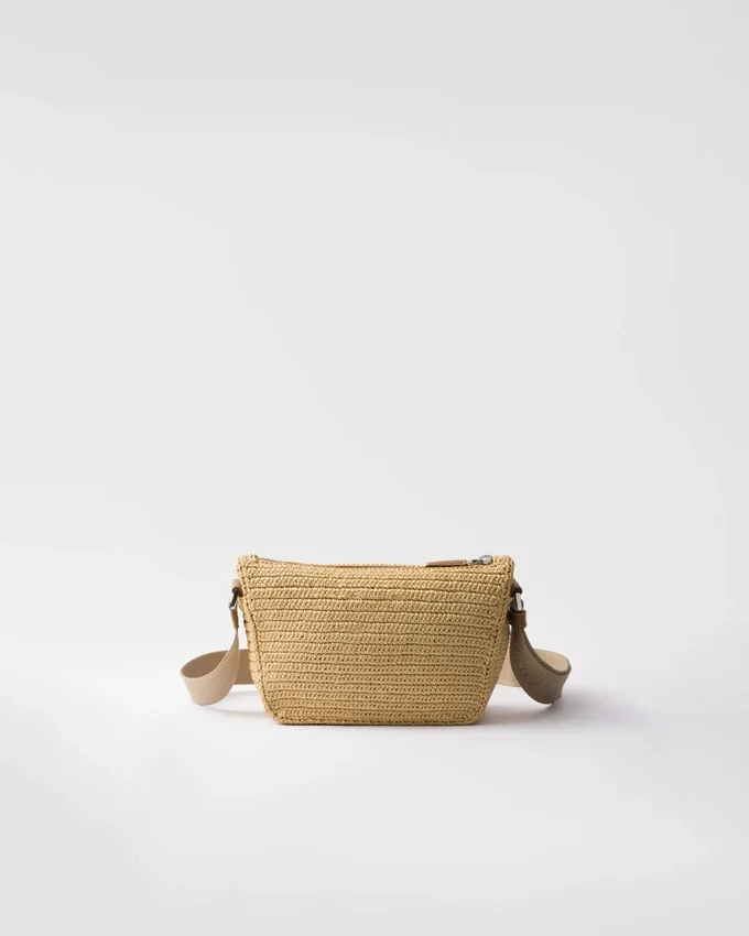 The Simple, Soft Silhouette of This Shoulder Bag is Emphasized by the Light, Summery Touch of the Crochet. Refined Leather Details Complete the Accessory Decorated with the Enameled Metal Triangle Logo.