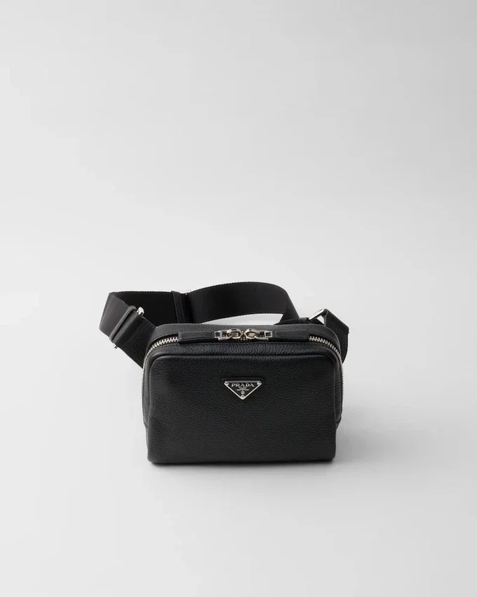 This Leather Shoulder Bag with a Structured Silhouette and Sleek Lines is Characterized by Its Compact Design with Zipper and is Decorated with the Iconic Triangle Logo.