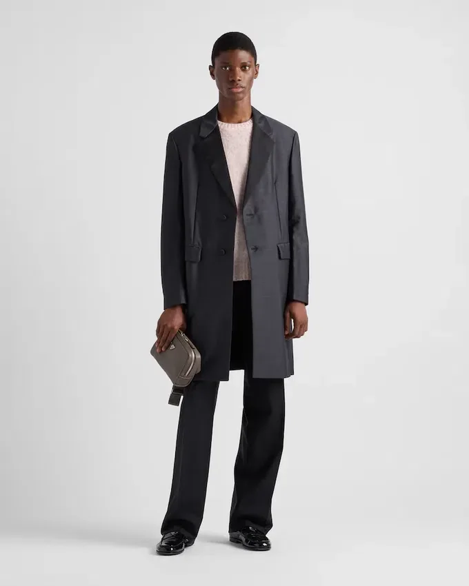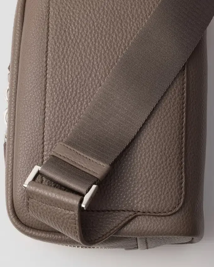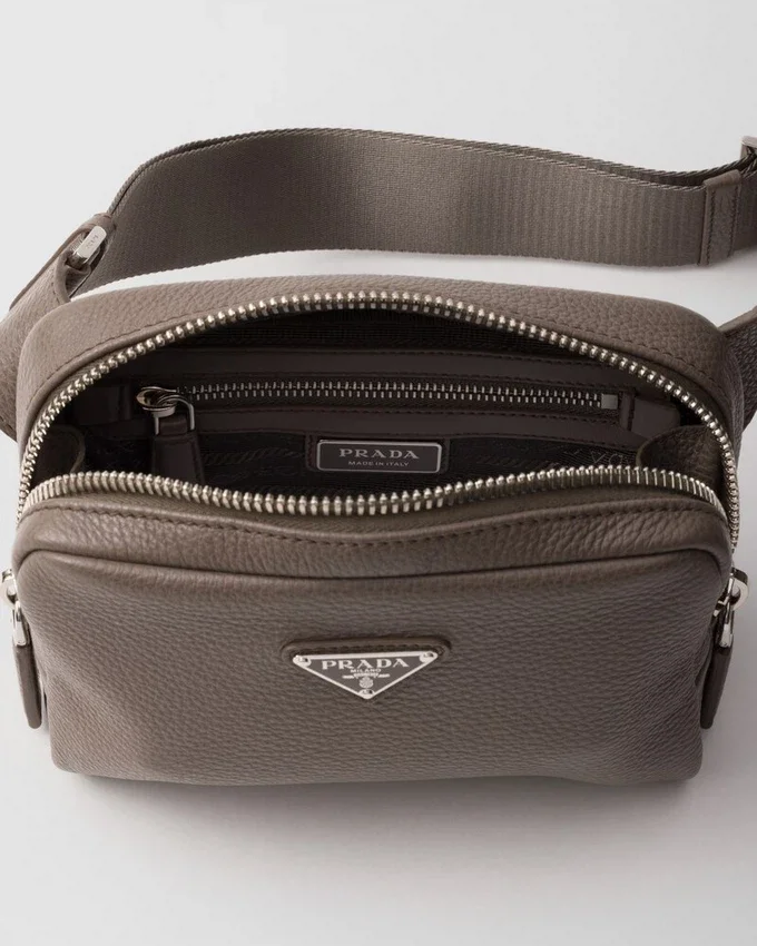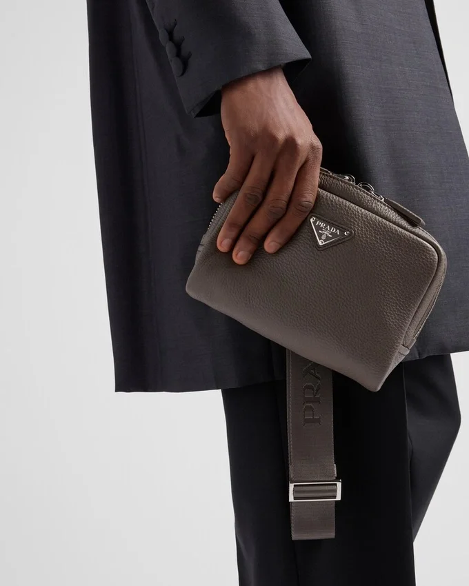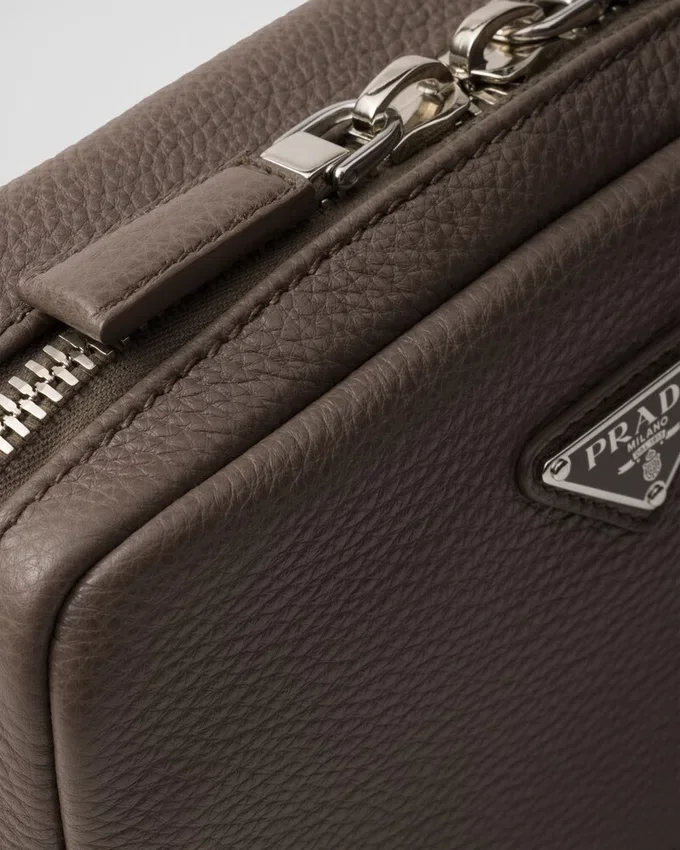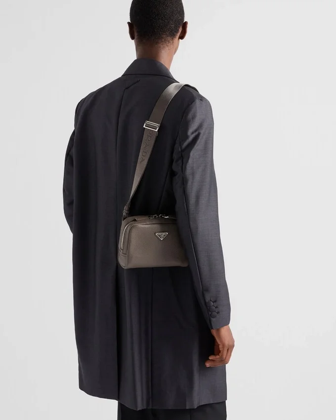 This Leather Shoulder Bag with a Structured Silhouette and Sleek Lines is Characterized by Its Compact Design with Zipper and is Decorated with the Iconic Triangle Logo.