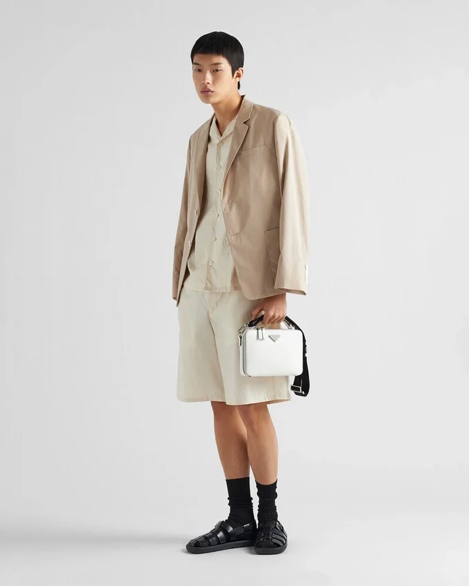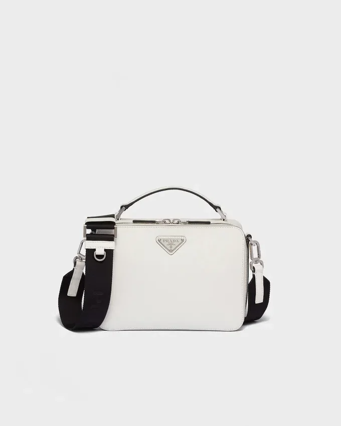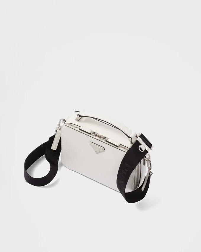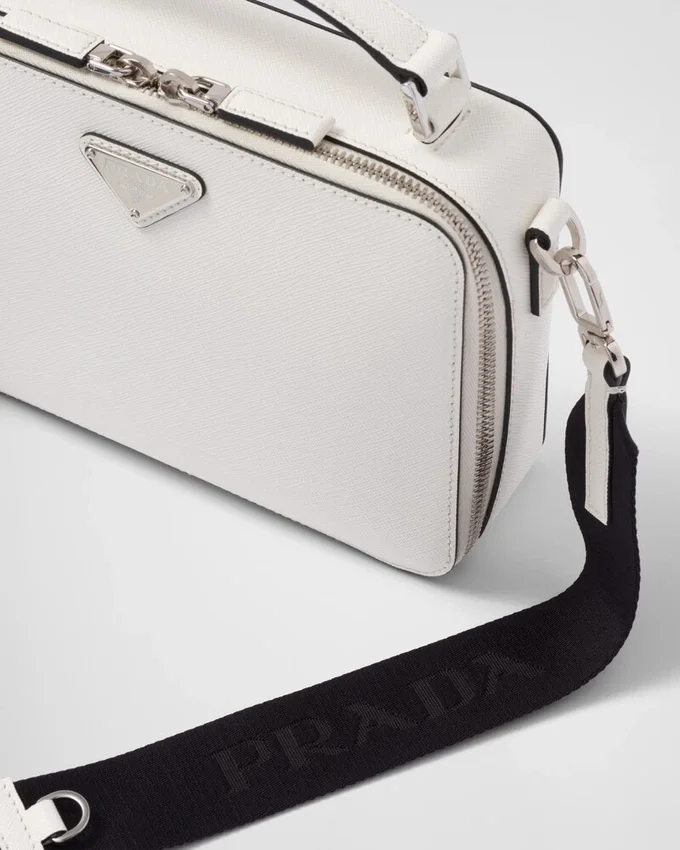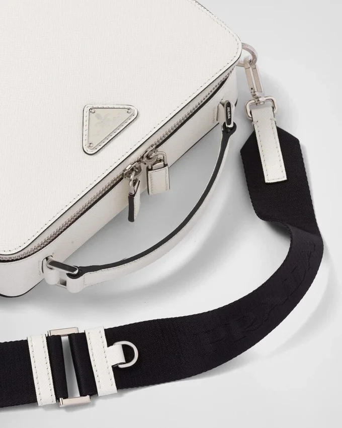 The Prada Brique Bag in Saffiano Leather Stands out for Its Sleek Lines. Saffiano Leather, an Iconic Prada Material, is Synonymous with Luxury and Identifies with Traditional Italian Leather Goods Production.