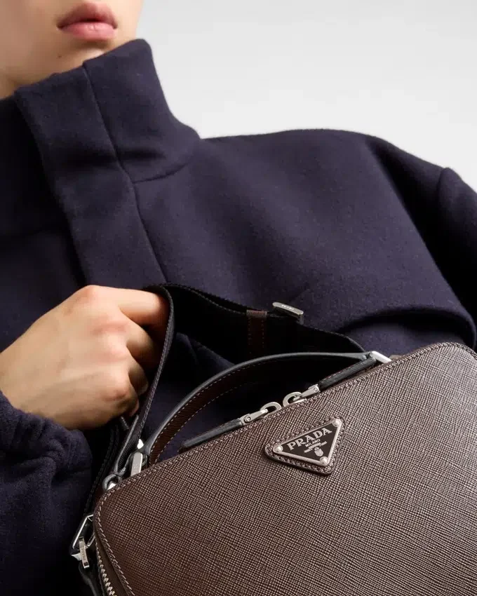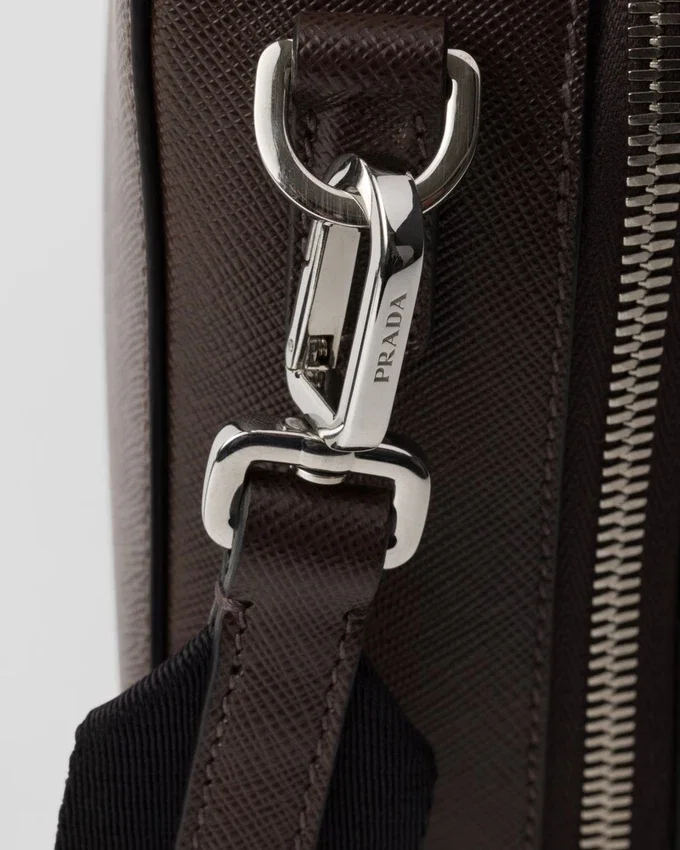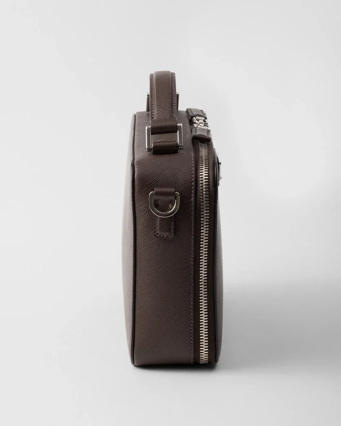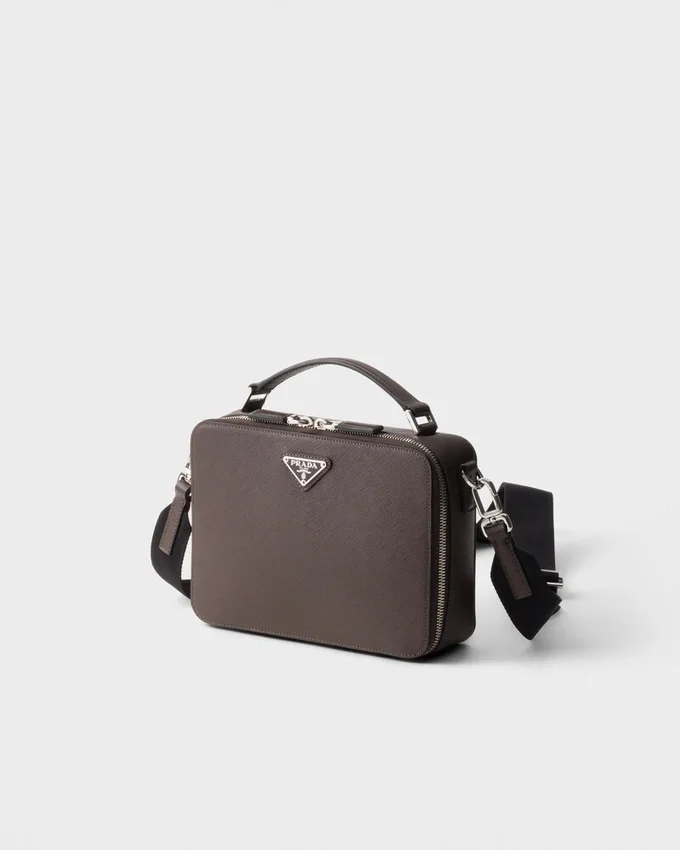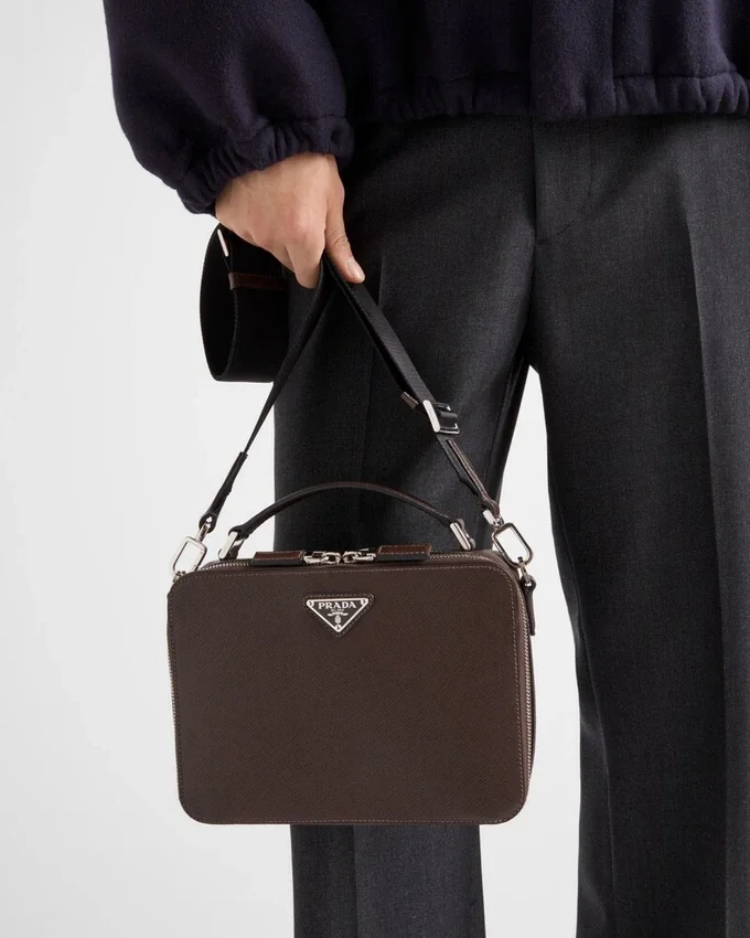 The Prada Brique Bag in Saffiano Leather Stands out for Its Sleek Lines. Saffiano Leather, an Iconic Prada Material, is Synonymous with Luxury and Identifies with Traditional Italian Leather Goods Production.