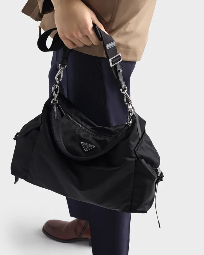 The Perfect Synthesis of Refinement and Functionality, the Explore Bag Embodies a Dynamic and Contemporary Style. The Bag is Reinterpreted with a Hobo Silhouette in Re-Nylon, Provided with a Removable Handle and Shoulder Strap for Versatile Wear. Leather Details and Metal Hardware Complete the Multi-Pocket Design Created for Urban Explorations and Outdoor Adventures. For Sustainable Care to Preserve the Product’s Characteristics and Reduce Microfiber Shedding, We Recommend Not Washing the Item Too Often. Let the Product Air out After Every Use and Follow the Washing Instructions on the Label.
