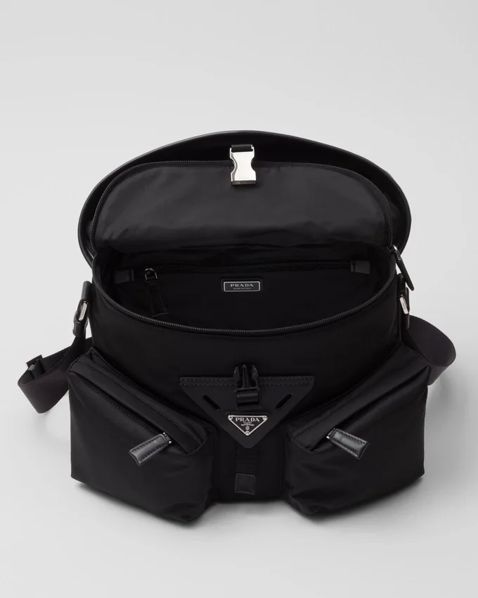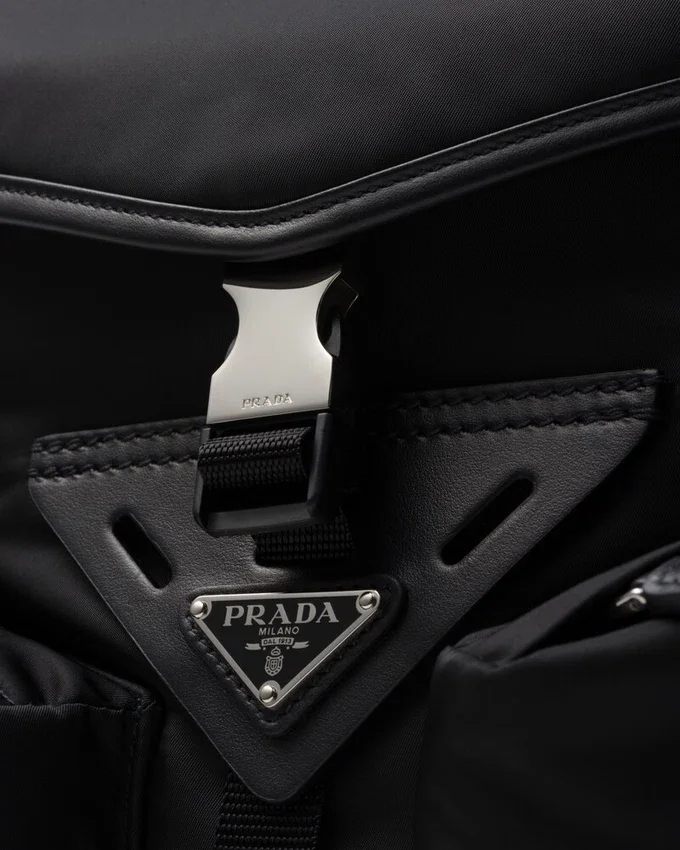 Prada’s Dual Soul is Reflected in the Modern, Hybrid Design of This Shoulder Bag That Combines a Sophisticated Aesthetic and Functionality. The Accessory Made of Re-Nylon, the Brand’s Distinctive Regenerated Nylon Fabric, is Enriched with Leather Details and Trim That Accentuate the Strong Geometric Lines. The Bag with Architectural Volumes Features Large Utility Pockets with a Slanted Cut That Frame the Leather Triangle at the Center, Enriched with the Iconic Enameled Metal Triangle Logo. For Sustainable Care to Preserve the Product’s Characteristics and Reduce Microfiber Shedding, We Recommend Not Washing the Item Too Often. Let the Product Air out After Every Use and Have It Dry Cleaned at a Specialized Ecological Dry Cleaners.