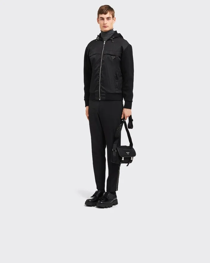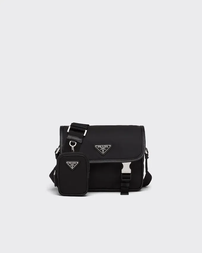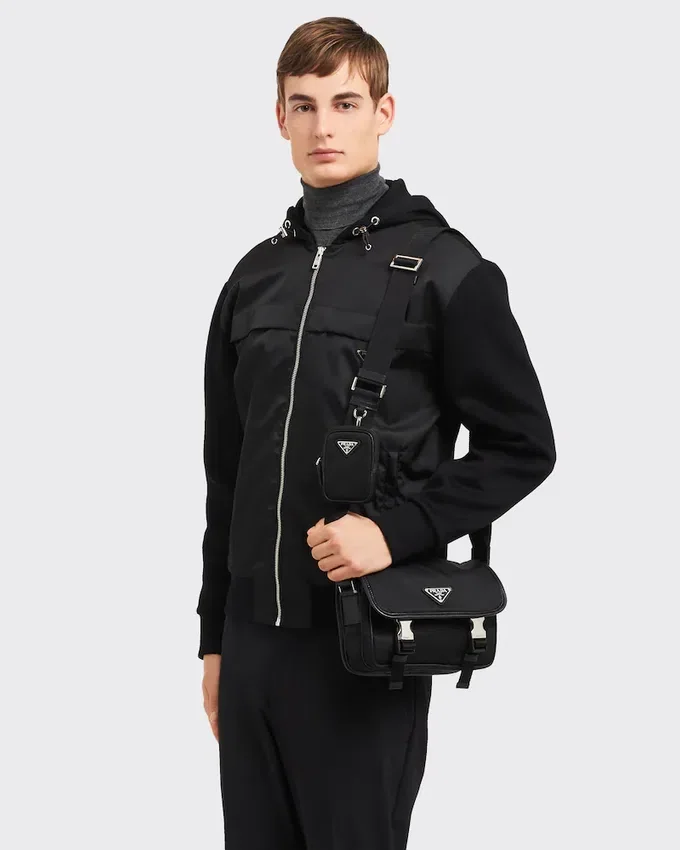 This Shoulder Bag with a Functional, Modern Design is Characterized by the Removable Pouch and Roomy Internal Compartments. Saffiano Leather Trim Add a Refined Touch to the Accessory Decorated with the Enameled Metal Triangle Logo. For Sustainable Care to Preserve the Product’s Characteristics and Reduce Microfiber Shedding, We Recommend Not Washing the Item Too Often. Let the Product Air out After Every Use and Have It Dry Cleaned at a Specialized Ecological Dry Cleaners.