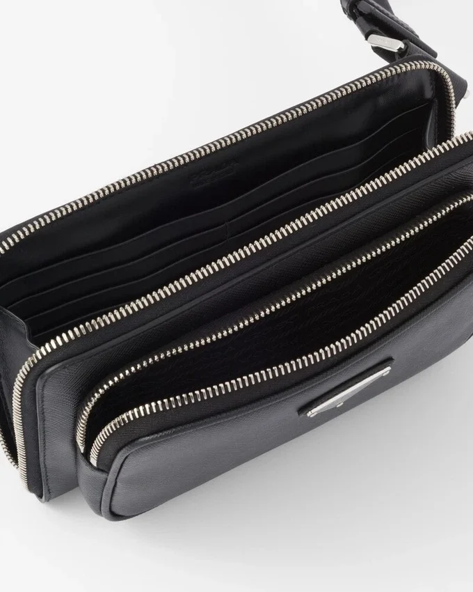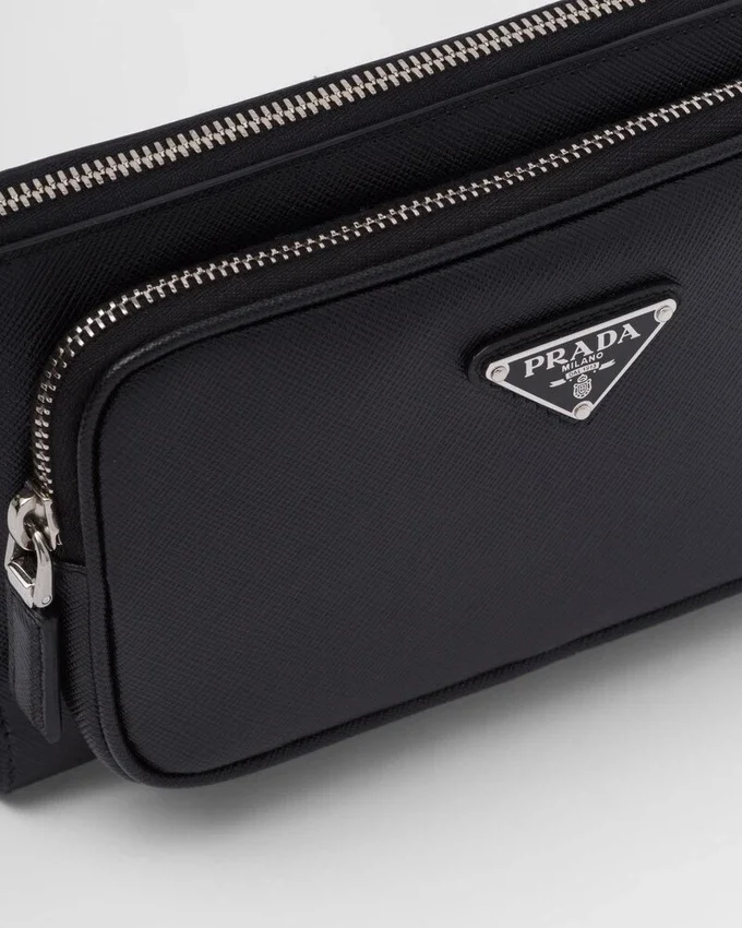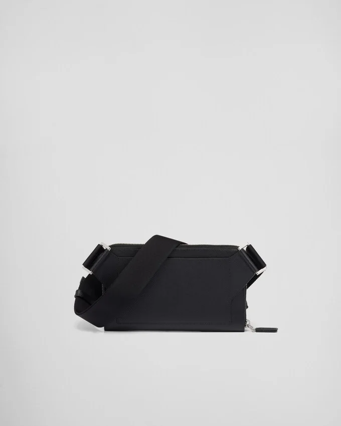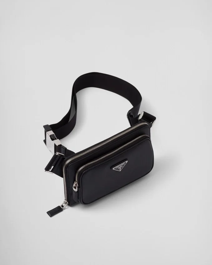 The Hybrid Concept That Pervades the Prada Narrative is Reflected in This Belt Bag with Modern Allure. Sleek, Elegant Lines Combined with Fine Saffiano Leather Create a Dialog with Details from Technical Sports World, Enriching the Design of the Accessory with New Aesthetic Visions. The Iconic Enameled Metal Triangle Logo Decorates the Bag on the Front.