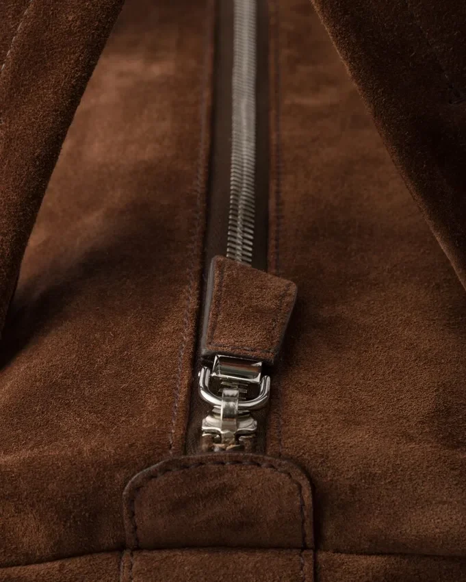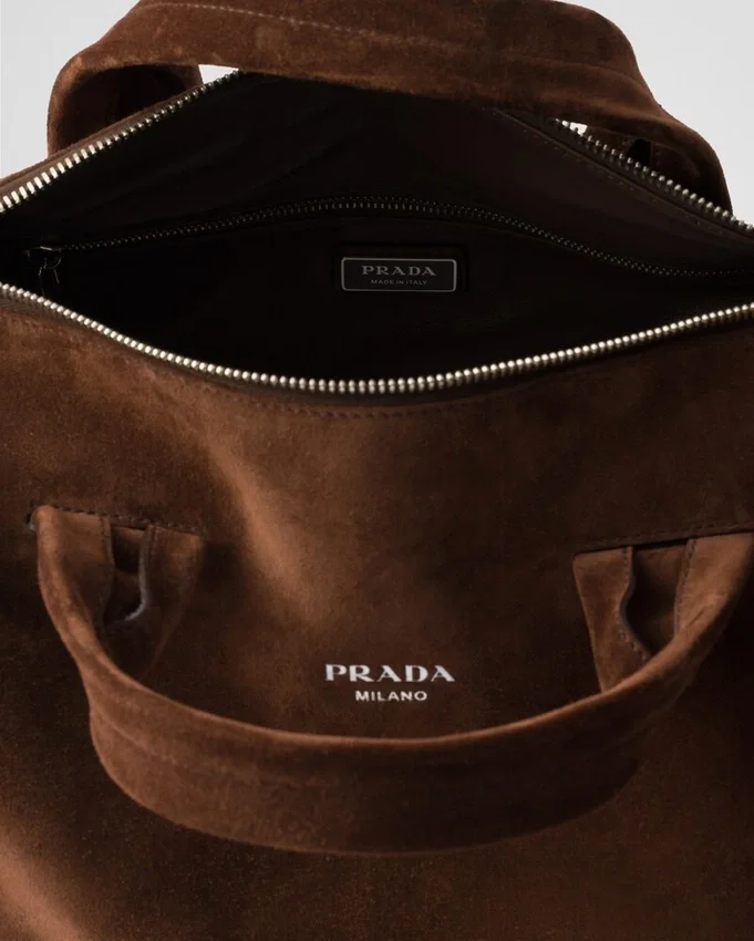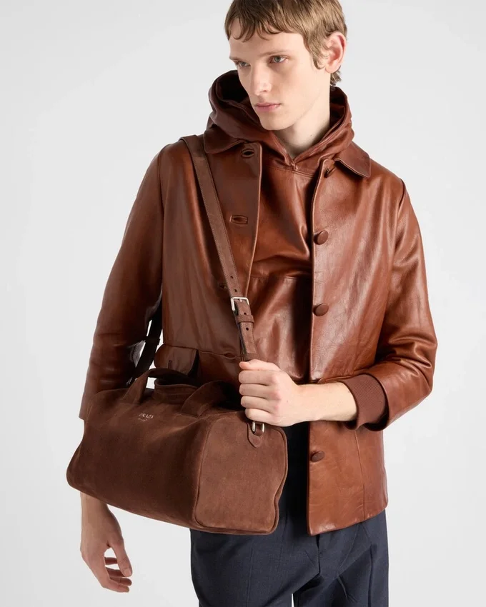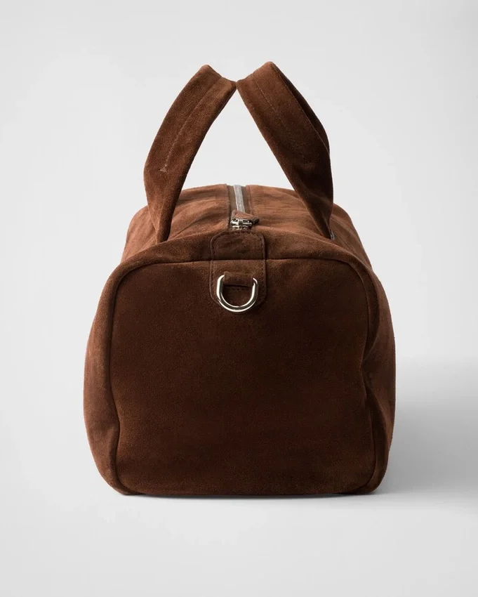This Duffle Bag with a Geometric, Minimalist Design, Embodies Functional, Contemporary Style. The Velvety Touch of Suede Enriches the Soft and Roomy Accessory Decorated with the Lettering Logo.