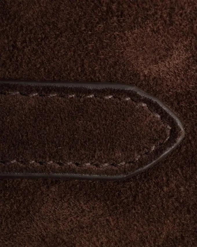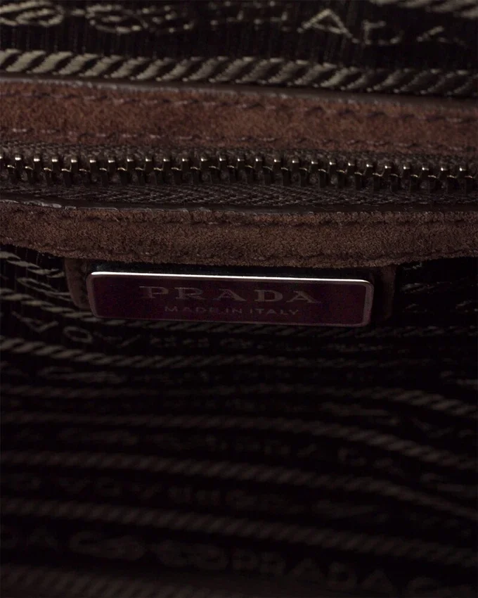 This Modern and Versatile Bag Has a Sleek Silhouette Embellished with Elegant Straps. The Refined Touch of Suede Emphasizes the Soft Lines of the Design, Decorated with the Distinctive Triangle Logo.
