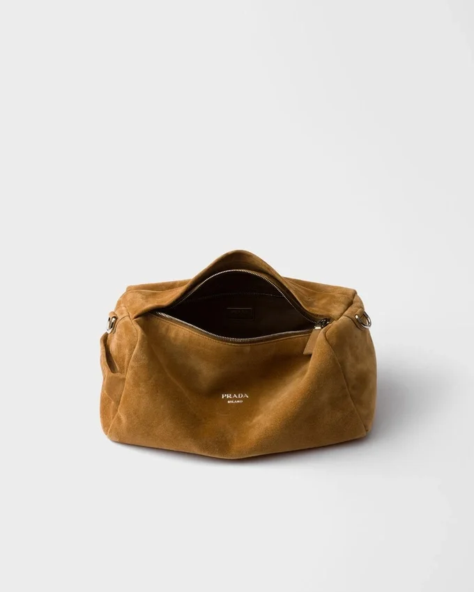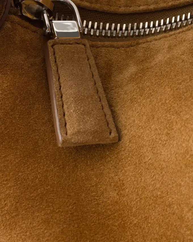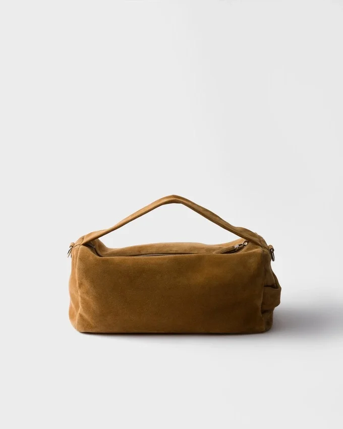 Minimalist Lines and Refined Details Define This Bag with a Contemporary Design That Can Carried by Hand or Worn with a Shoulder Strap. The Velvety Touch of Suede Enriches the Accessory with Soft Lines Decorated with the Lettering Logo.