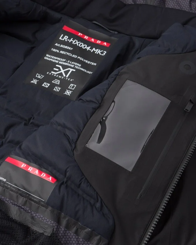 This Ski Jacket with a Casual Attitude and Sleek Style is Made of Extreme-Tex, an Innovative Waterproof Multilayer Fabric. The Iconic Design of the Garment is Characterized by a Regular Fit and Hooded Collar and Accented with Technical Details Such as Waxed Zippers and Hook-And-Loop Fasteners. Graphene® Padding Favors the Regulation of Body Temperature: In Hot Weather, the Heat is Dispersed While in Cold Weather, the Heat is Evenly Distributed to Stabilize the Body Temperature. The Latex Label Decorates the Garment.