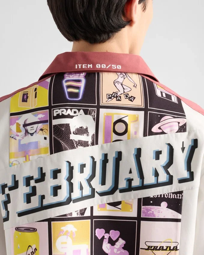 For the Timecapsule Drop #62, Prada Looks at the Archives for Its New Limited-Edition Shirt Made from Upcycled Fabrics. The Exclusive Style Features a Dynamic Print Inspired by a Retrofuturistic Style That Blends Iconic Motifs and Pop Symbols in Vibrantly Colored Graphic Art. Available Exclusively Online for Just 24 Hours, the Drop Includes the Timecapsule Shirt and Its Nft Digital Version That Lets You Become Part of Prada’s Exclusive Crypted Nft Community.