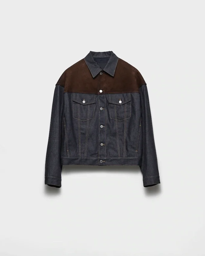 Enhanced in Its Construction and Details, This Denim Blouson Jacket Acquires Unique, Refined Allure. The Timeless Piece Reinterpreted with a Structured Silhouette and Cashmere Lining is Embellished with a Soft Suede Yoke Insert.