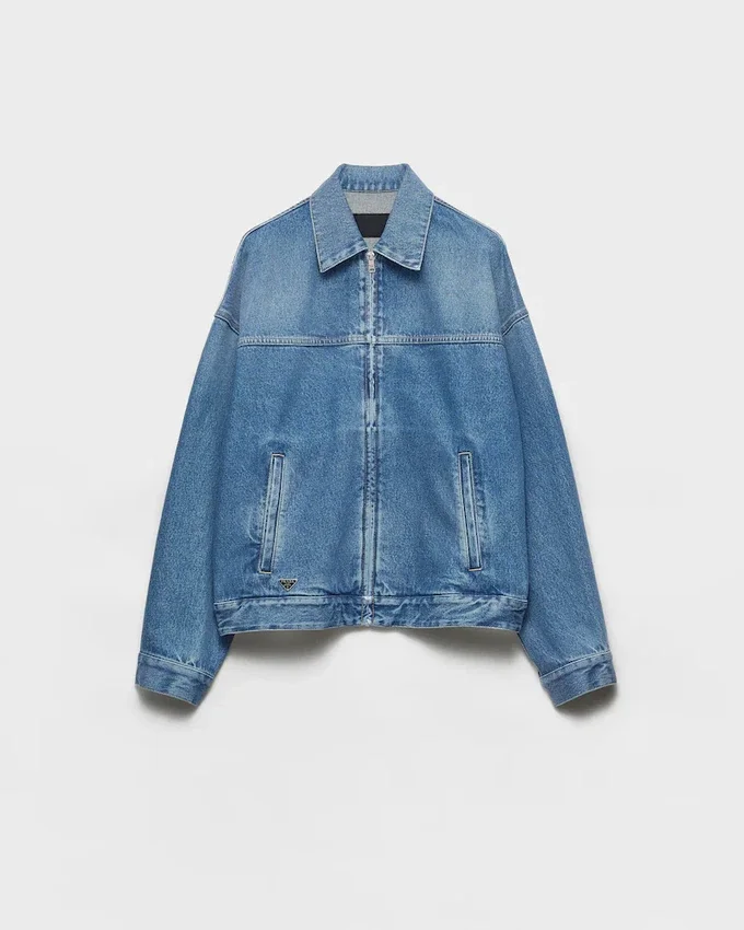 This Blouson Jacket is Made of Washed Denim That Adds Character and Dimension to the Silhouette with a Simple Cut. The Zipper Closure and Shirt-Style Collar Add a Refined, Minimalist Note to the Casual Style.