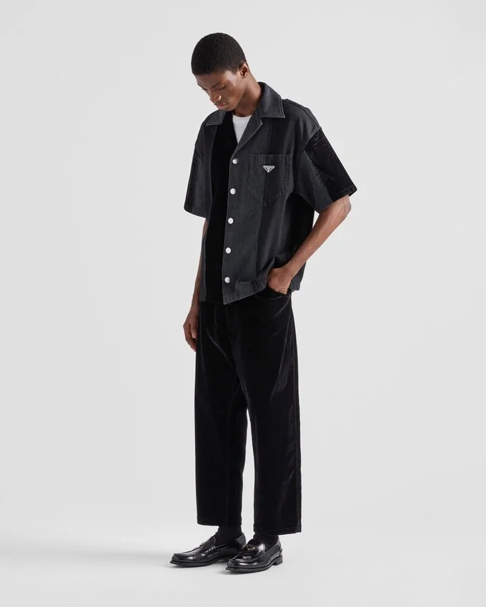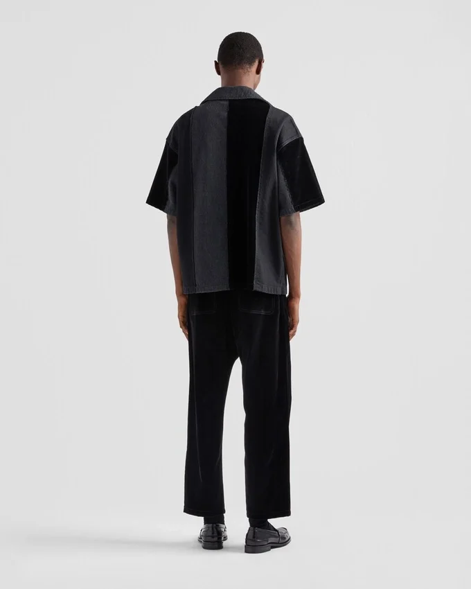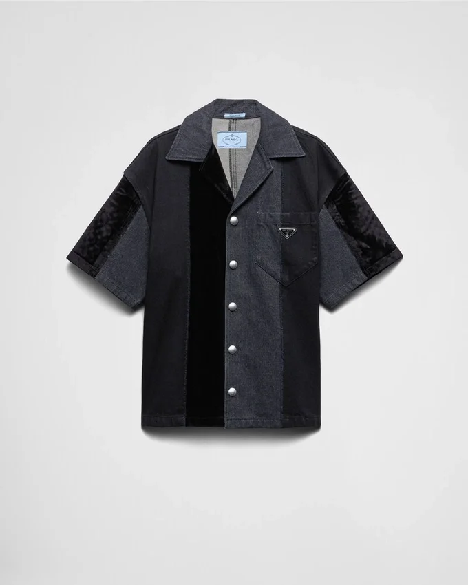 The Distinctive Shirt with Bowling Collar is Reinterpreted in Denim with a Patchwork Motif and Modernist Character That Gives the Sporty Silhouette a New Attitude.