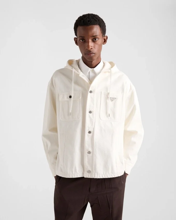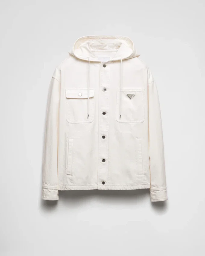 Archetypal Silhouettes Are Reinterpreted with a Contemporary, Sporty Attitude That Mixes Shapes and Materials in Original Combinations. This Denim Shirt Has a Minimalist Design Defined by the Hood, Original Details That Create a Hybrid Garment Completed by the Sleek Geometric Shape of the Triangle Logo.
