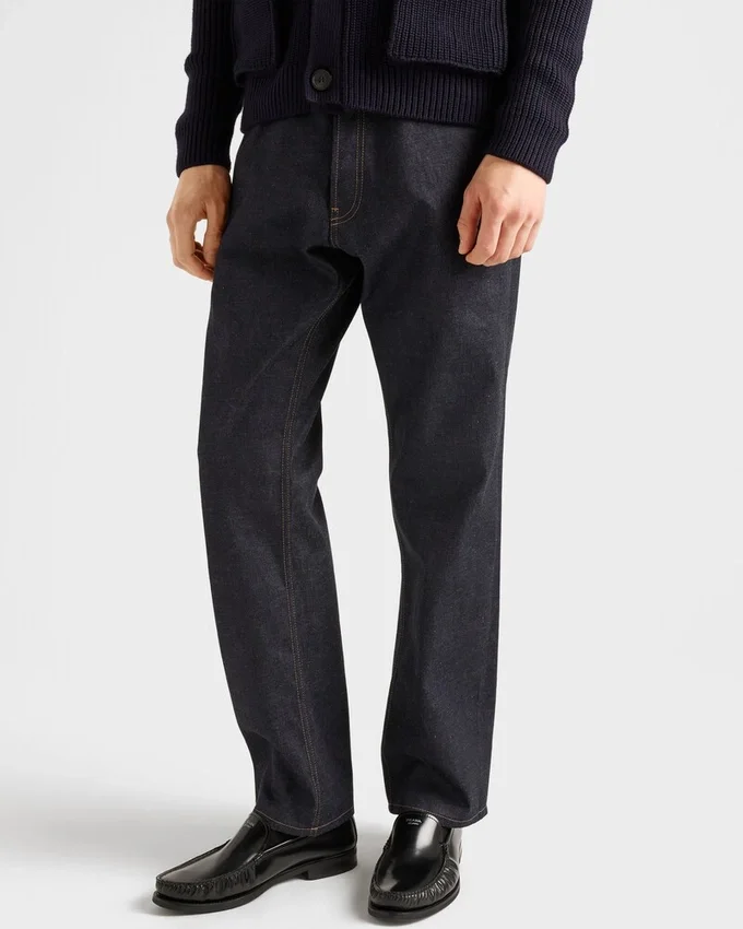 These Raw Denim Jeans with a Mid-Rise Waist and Classic Cut Have a Sleek, Sophisticated Design. The Five-Pocket Style is Embellished with a Small Leather Strap on the Back and Label with Archive Logo.