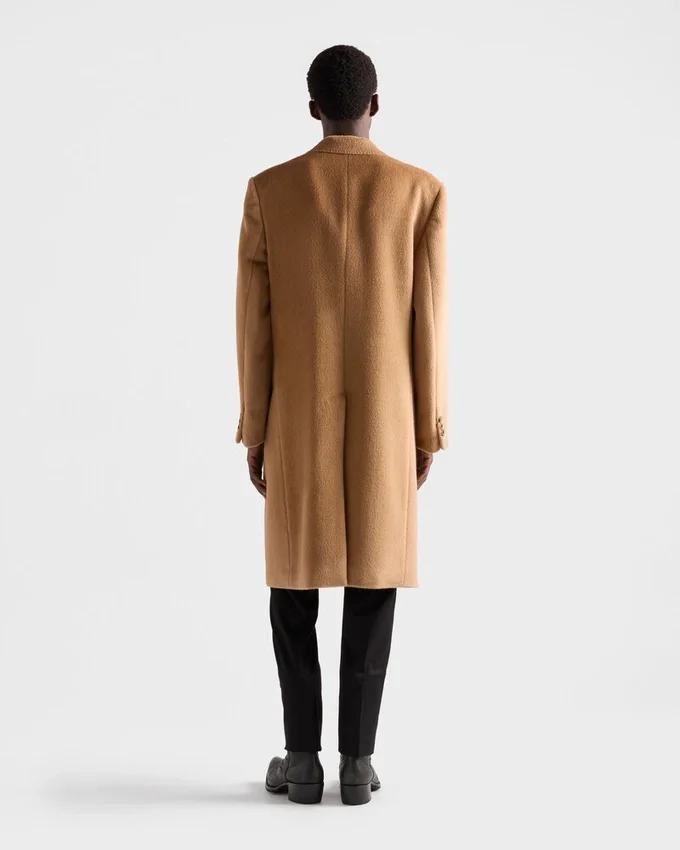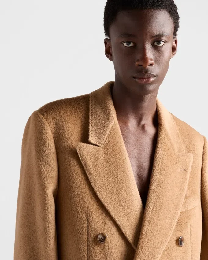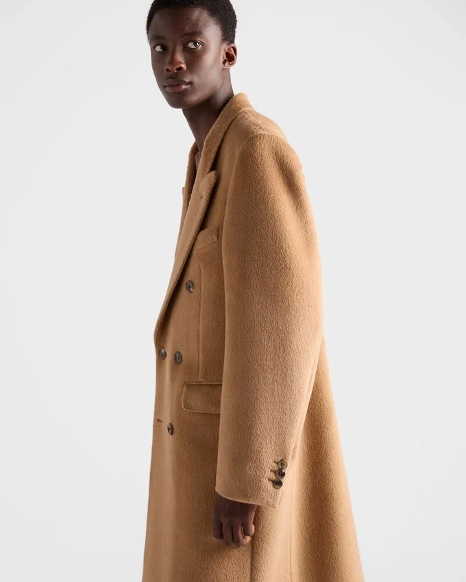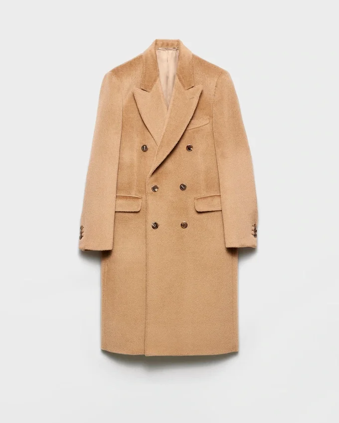 Sartorial Precision and Refined Materials Define This Wool Blend Coat. The Double-Breasted Silhouette is Characterized by Peak Lapels That Give the Garment a Note of Timeless Elegance.
