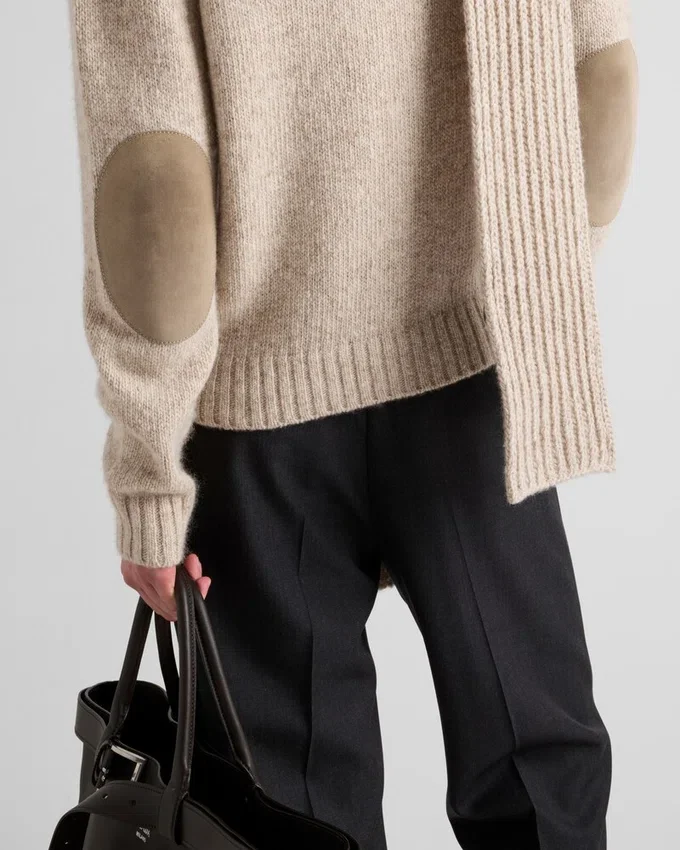 The Soft Touch of Cashmere Makes This Crew-Neck Sweater Unique, with Ribbed Knit Details and the Iconic Geometric Shape of the Triangle Logo.