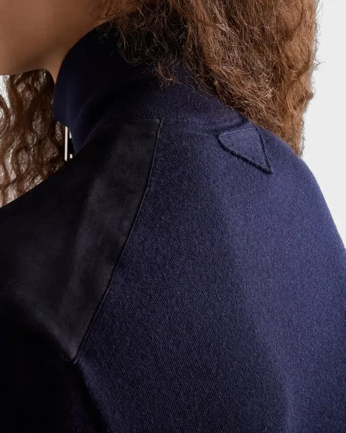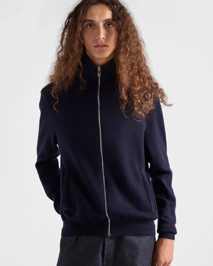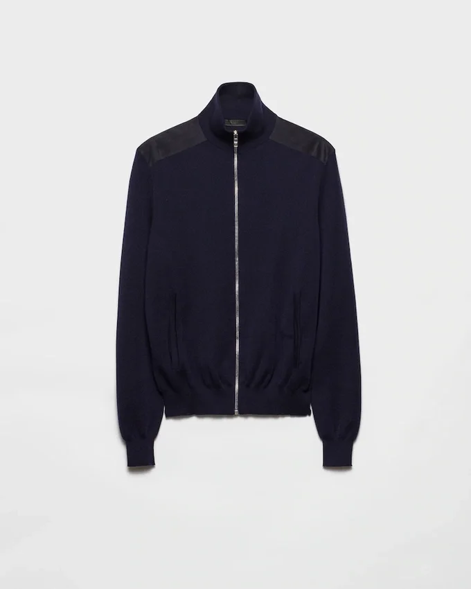 This Plain Knit Cardigan with Zipper Front is Made of Soft, Compact Cashmere. The Raglan Shoulder with Leather Inserts and the Ribbed Knit Trim Reflect the Artisan Craftsmanship That Focuses on Form and Function.