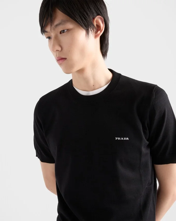 This Cotton Sweater Has Short Sleeves and a Slim Fit. The Versatile Style is Completed with the Lettering Logo Embroidered in a Contrasting Color.