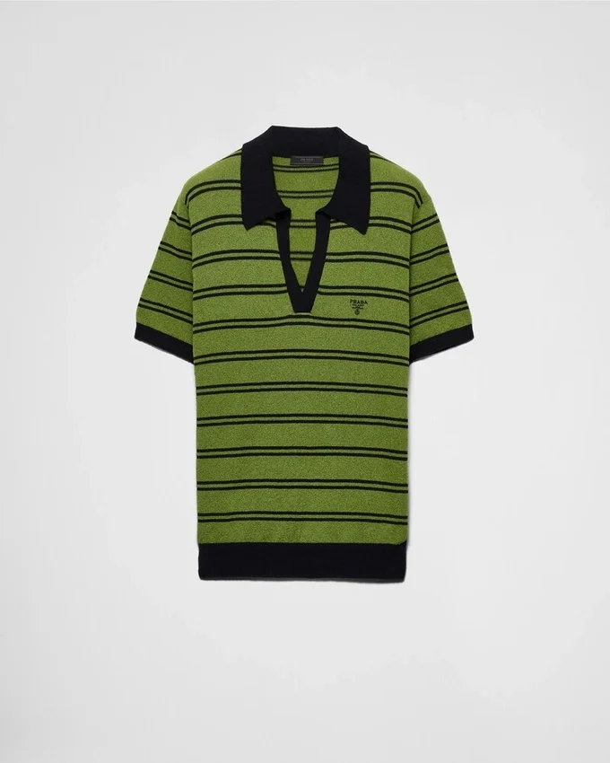 Contrasting Trim Defines the Design of This Short-Sleeved Cotton Polo Shirt Featuring a Stripe Motif and Enriched with a Jacquard Lettering Logo.