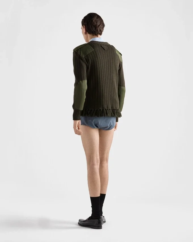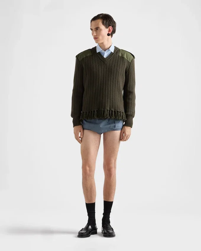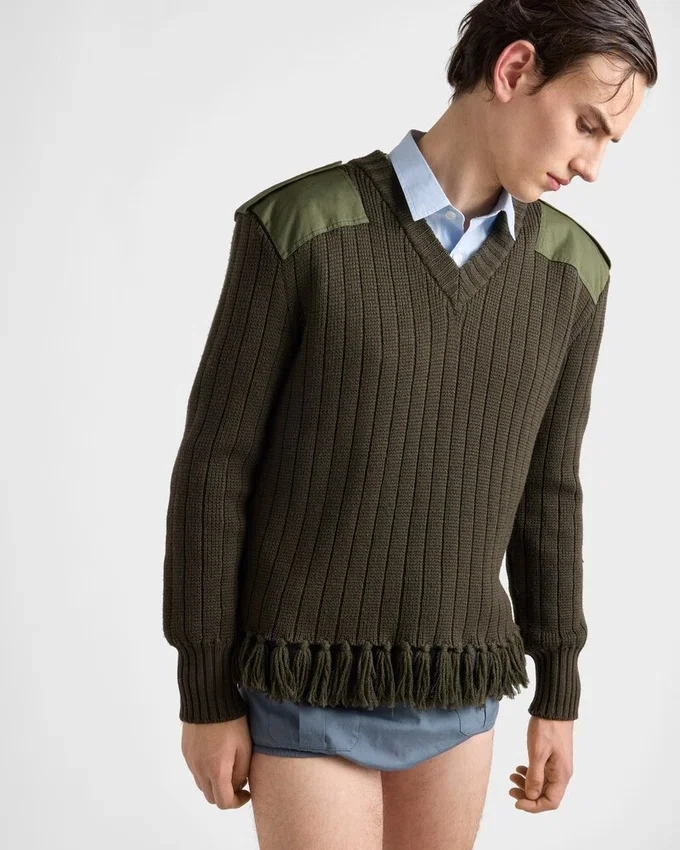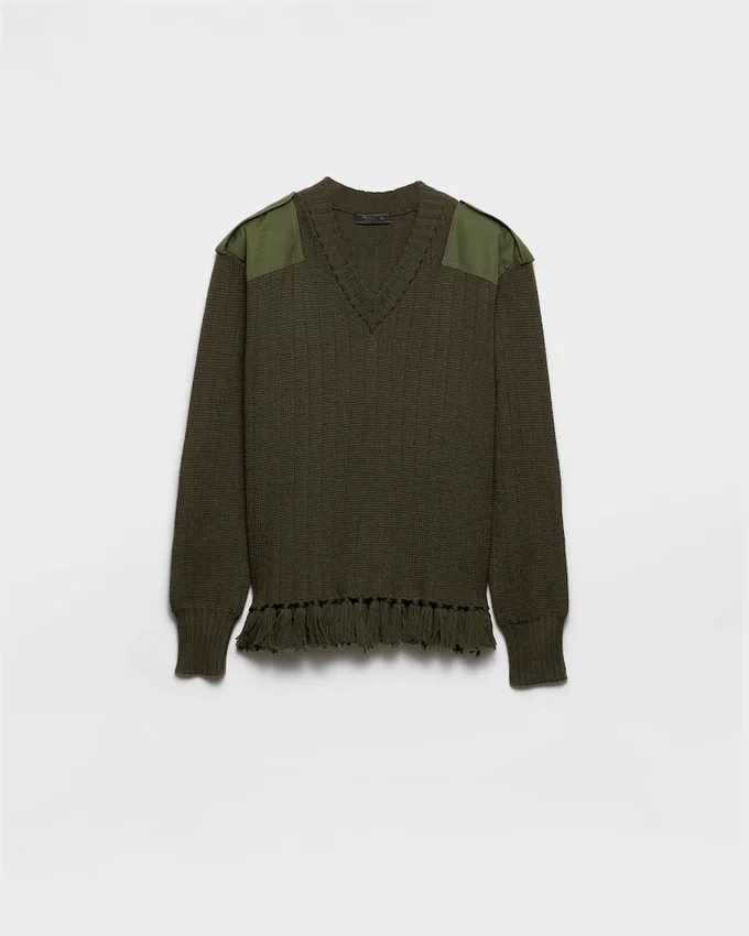 Unexpected Interactions Define This Wool V-Neck Sweater That Blurs the Boundaries Between Rigor and Lightness. A Play of Contrasts is Expressed with Different Mixes of Materials and Details, from Cotton Inserts to the Fringe Embellishing the Hem.