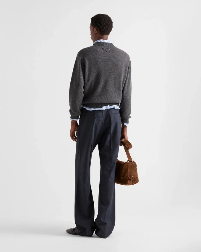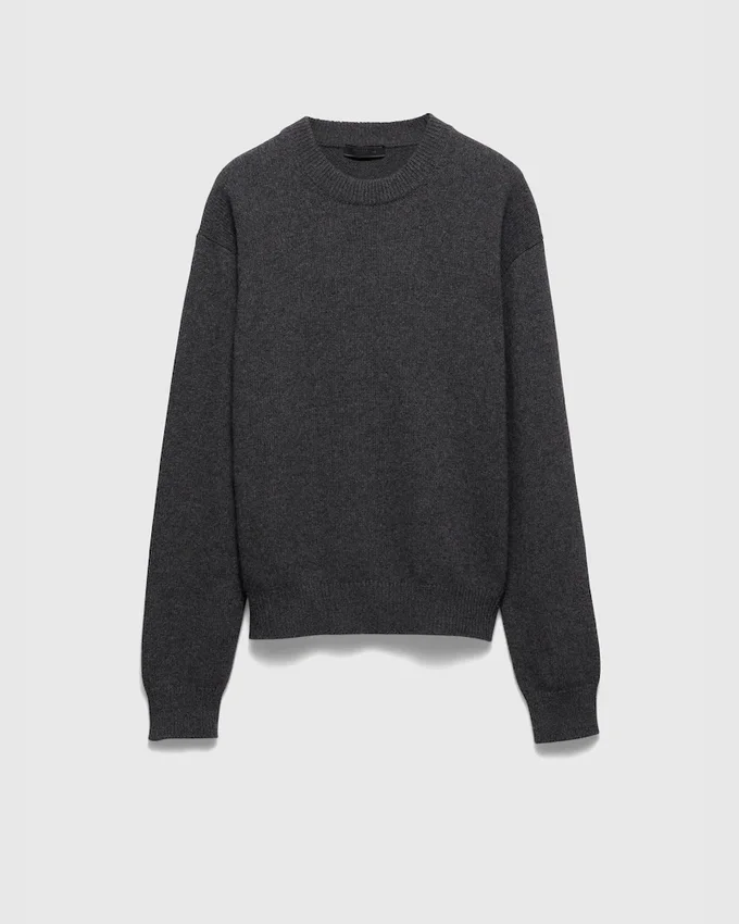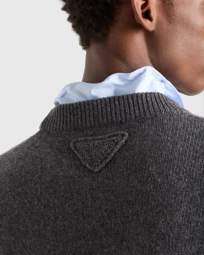 Classic Lines and Sleek Details Define This Refined Sweater Made of Soft Regenerated Cashmere with Ribbed Knit Trim. The Tonal Triangle Logo Completes the Refined and Versatile Style.