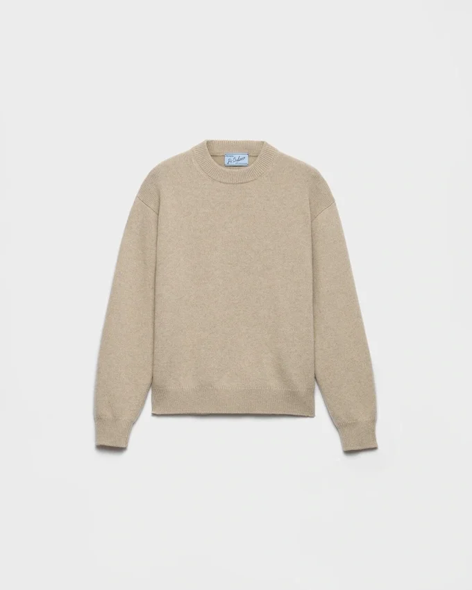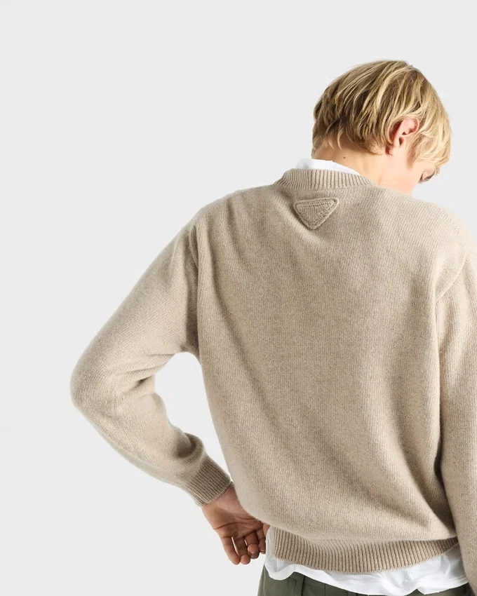 Classic Lines and Sleek Details Define This Refined Sweater Made of Soft Regenerated Cashmere with Ribbed Knit Trim. The Tonal Triangle Logo Completes the Refined and Versatile Style.