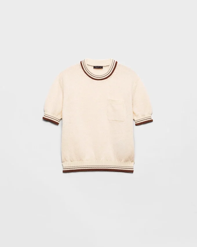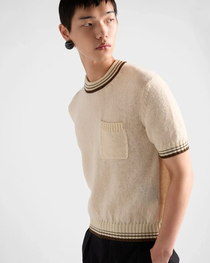 Casual Details Enrich This Short-Sleeved Shetland Wool Sweater with a Slim Silhouette. The Style Features Graphic Contrasts and is Completed by a Patch Pocket on the Front.