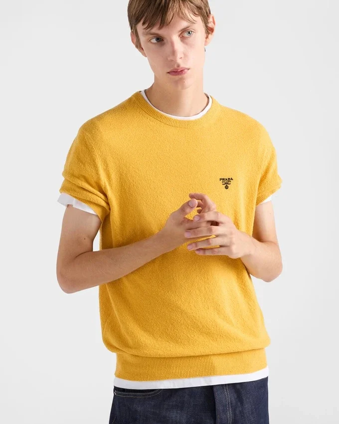 This Sleek and Refined Short-Sleeved Sweater is Made of Cotton with a Classic Silhouette Decorated with the Iconic Geometric Shape of the Triangle Logo.