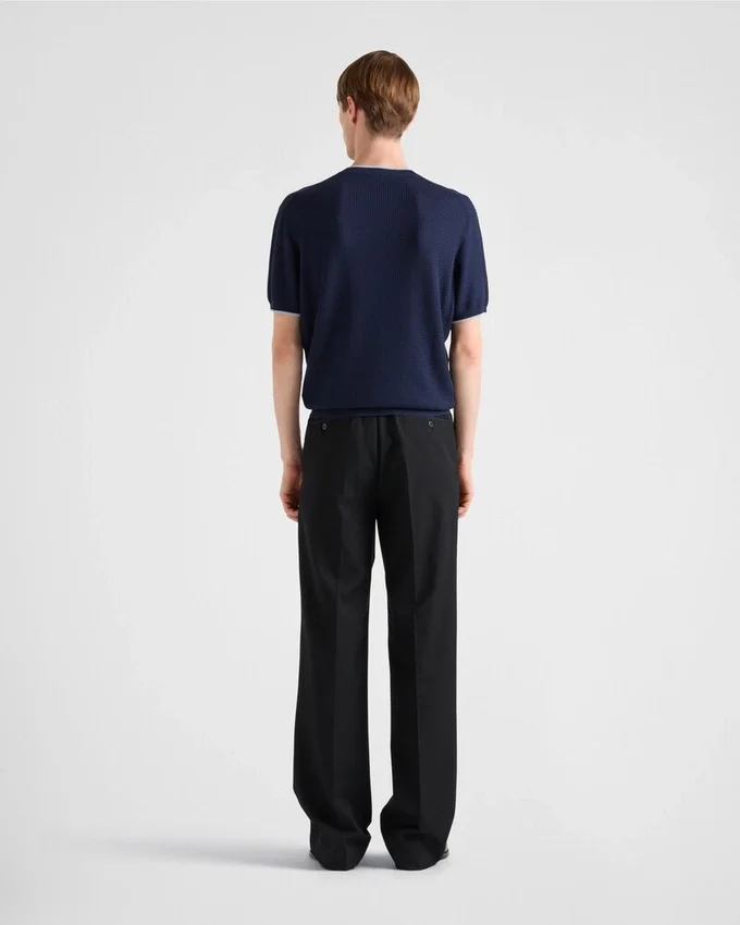This Sleek and Refined Short-Sleeved Sweater in Silk and Cotton Has a Light Silhouette with Classic Lines and is Decorated with the Lettering Logo.