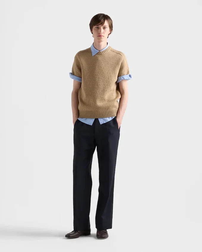 Softness and Structure Coexist in the Design of This Short-Sleeved Wool Sweater. The Refined, Contemporary Design is Completed with the Tonal Triangle Logo.
