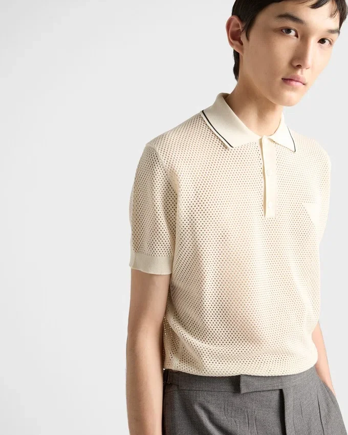 This Short-Sleeved Silk and Cotton Polo Shirt Has a Classic Design Animated by the Mesh Knit That Adds a Light, Modern Touch to the Garment.