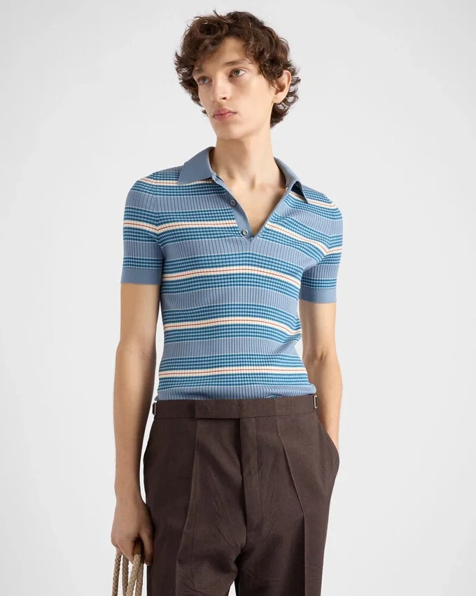 A Sportswear Classic, This Polo Shirt is Reinterpreted with a Slim Fit and a Lively Stripe Motif with Vintage Allure. The Cotton Knit Garment Has a Light Feel and is Decorated with the Tonal Triangle Logo.