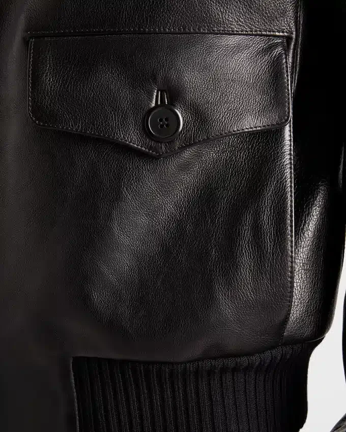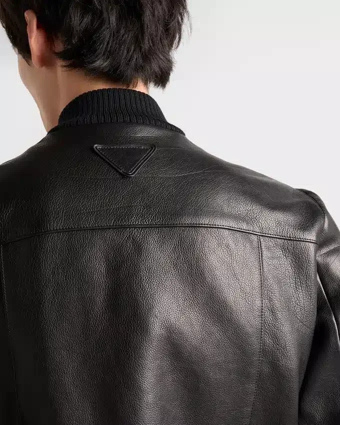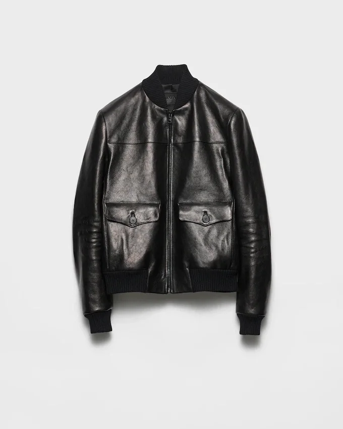Soft Volumes Create the Silhouette of This Leather Bomber Jacket with Refined Style. The Style, Completed with Knit Details, Embodies a Distinctive and Versatile Style Characterized by a Combination of Vintage References and Contemporary Touches.