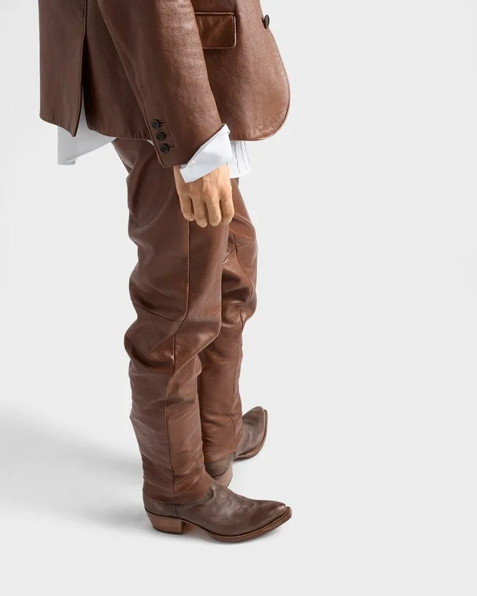 Nappa Leather with a Soft, Light and Refined Texture Enhances These Pants with Distinctive Style. The Tapered Silhouette with a Relaxed Fit is Completed by an Antiqued Finish That Makes the Garment with Vintage Allure Even More Unique.