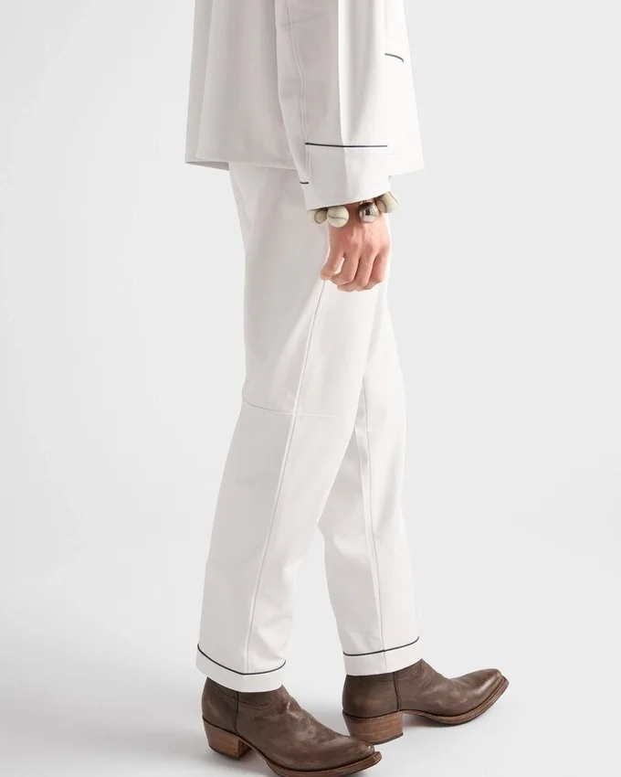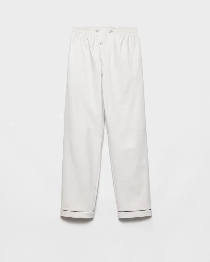 Unexpected Combinations and Instinctive Juxtapositions Define These Pajama-Style Nappa Leather Pants Characterized by a Soft, Light Design with Contrasting Piping. The Innovative Use of Materials Transforms the Informal Silhouette into a Unique Garment That Embodies Authentic, Refined Elegance.
