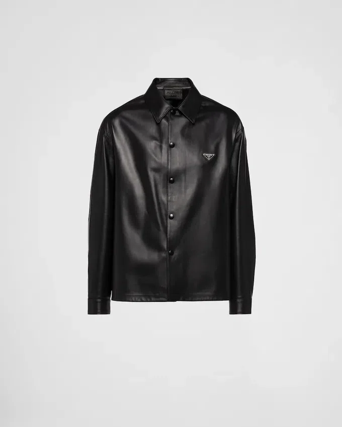 The Duality That Characterizes Prada Collections is Reflected in the Creation of Hybrid Designs That Blend Different Materials and Styles to Make Something Innovative. An Essential Menswear Garment, the Shirt with Classic Collar and Straight Cut is Reimagined in Soft Nappa Leather for a Contemporary Effect: The Versatile Garment Can Also Be Worn as a Jacket.