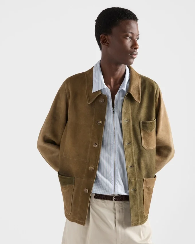 This Blouson Jacket, with a Design That Combines Tradition and Modernity, Has a Deconstructed Silhouette and is Made of Suede Enriched with a Vintage Effect. Modernist Lines and Functional Details Define the Garment with a Refined and Authentic Character Completed with the Tonal Triangle Logo.