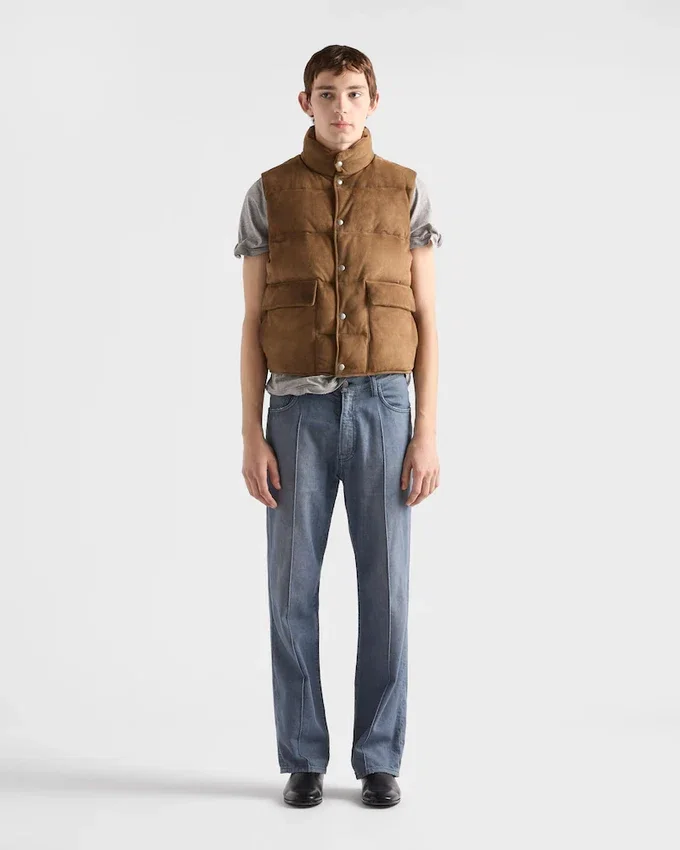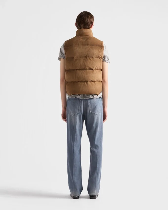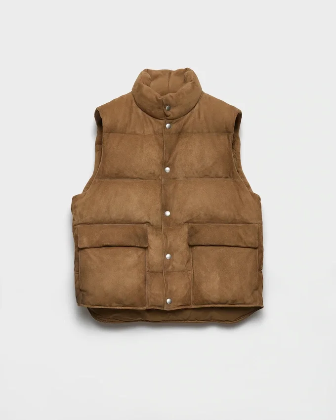 This Suede Vest is a Hybrid Garment Created with Unexpected Interactions Between Formal Elements and Sporty Lines. The Design, Characterized by Warm Padding, Combines Refined Materials, Contemporary Style, and Functional Details.