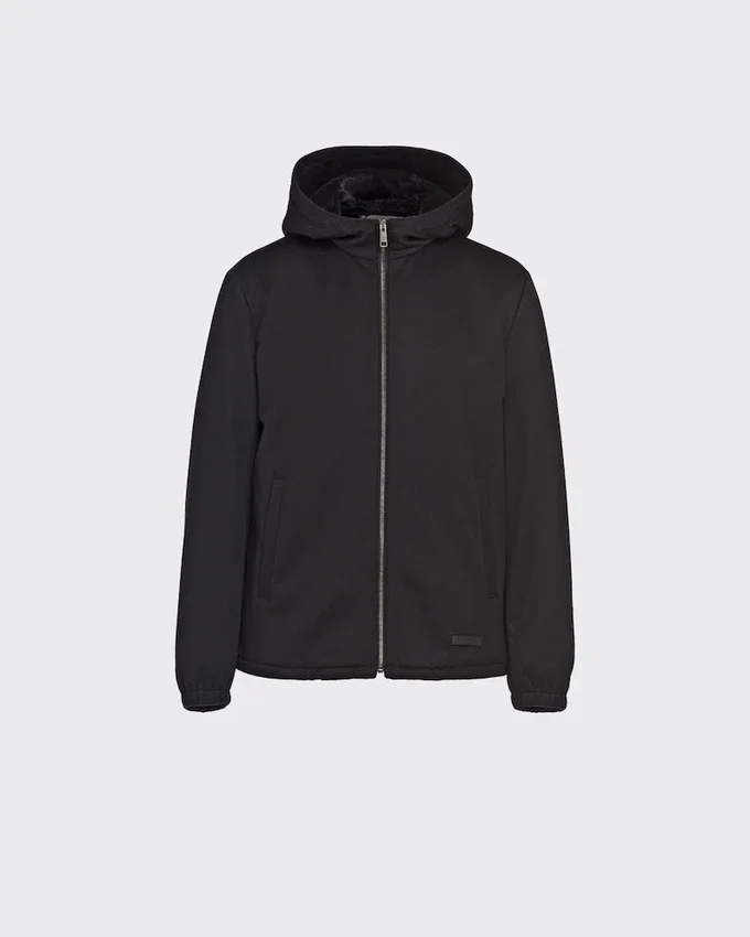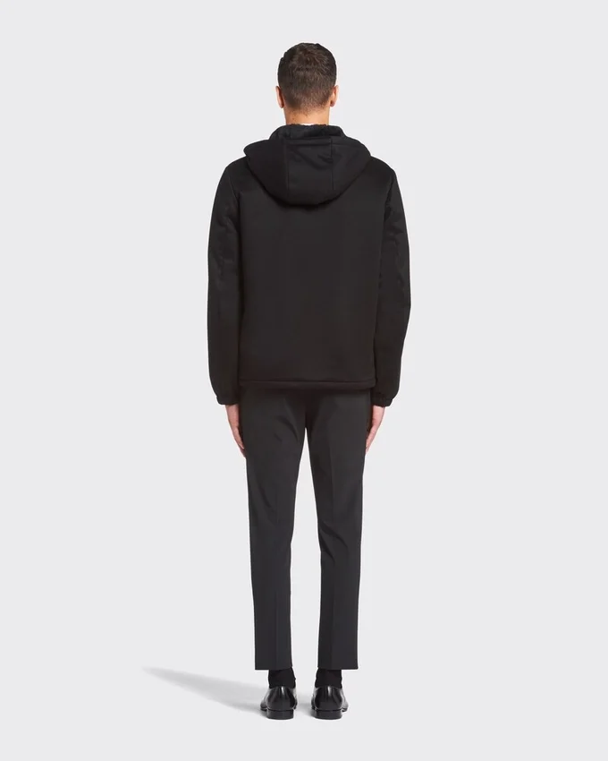 This Men’s Blouson Jacket Comes in Fine Cashmere Cloth Made from Very Fine Fibers Bonded to a Bio-Based, Waterproof and Windproof Technical Membrane. For a Second Protective Barrier, the Cashmere Undergoes a Pcf Free Waterproofing Treatment That is Free of Toxic Substances for the Environment and Primarily Produced from Renewable Plant-Based Materials. Prada’s Duality is Also Expressed Through the Construction of Its Fabrics: Traditional Luxurious Materials Are Combined with Innovative, Eco-Sustainable, High-Performance Technical Fibers.