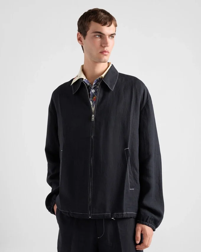 This Cotton Blouson Jacket with a Sleek, Sophisticated Cut Embodies Refined, Contemporary Style. Contrasting Top-Stitching Emphasizes the Clean Lines of the Silhouette Completed by a Zipper Closure That Adds a Sporty Note.
