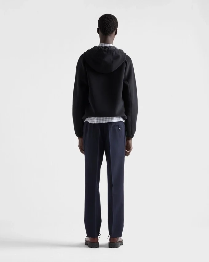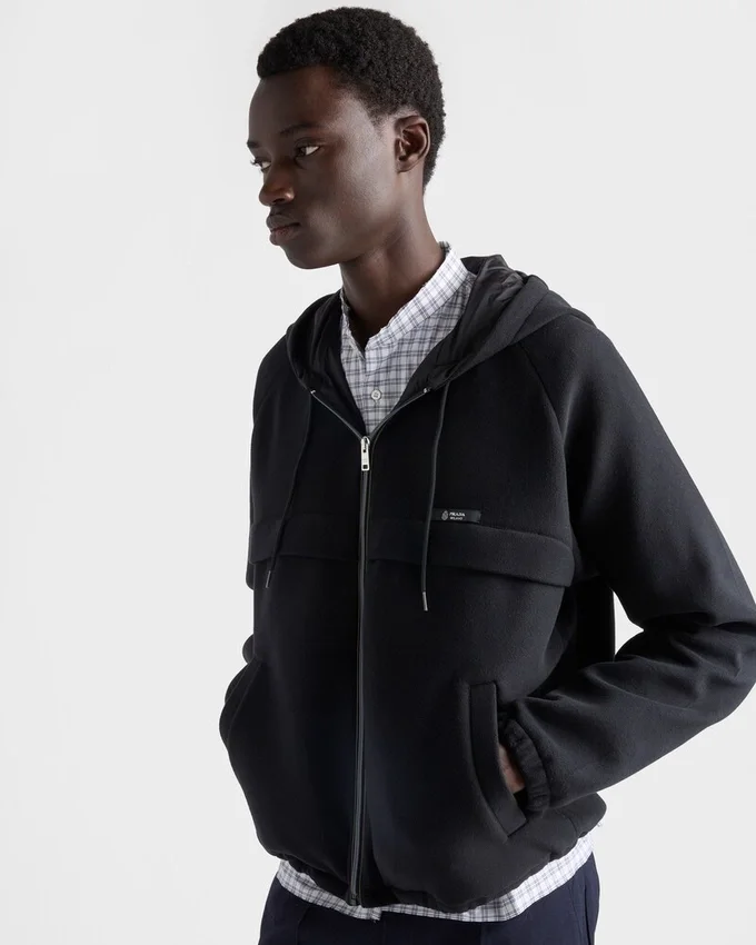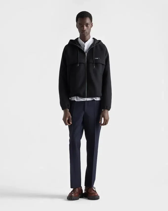 A Regular Fit and Dynamic Spirit: This Polyester Blouson Jacket Combines a Simple Zipper, Adjustable Drawstring, and Lining Made of Recycled Material. The Folds Created by Pressing the Finished Garment Highlight Its Rigorous Construction and Modern Touch.