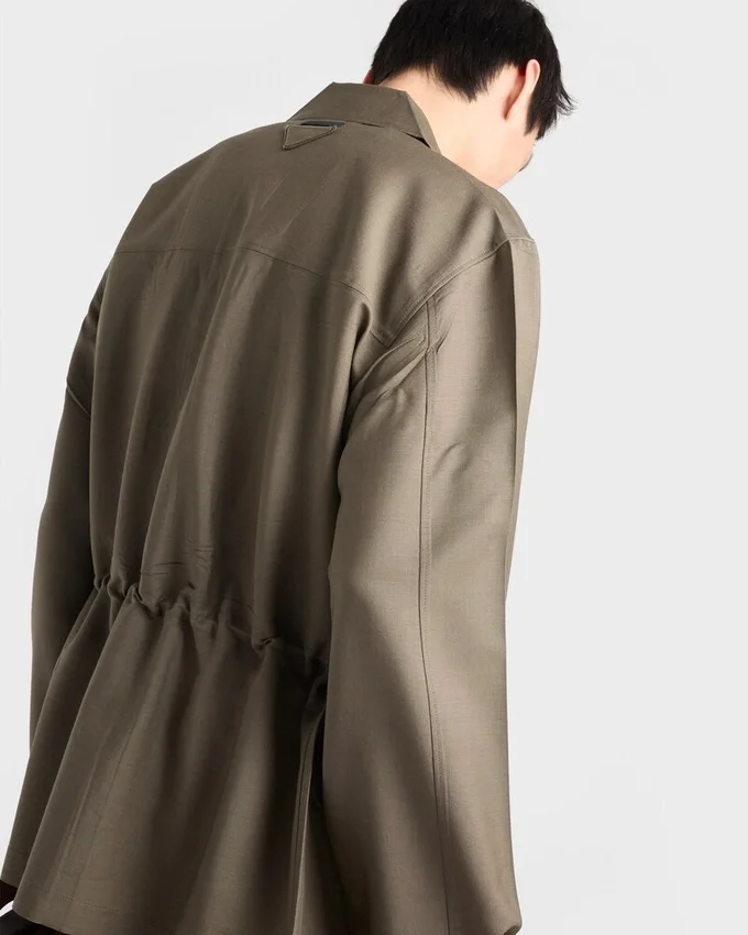 A Utility Spirit Blends with Prada’s Modernist Style in This Garment Made of Mohair and Wool with a Structured Line, Pressed After Assembly to Give It a Vintage Look. The Iconic Shape of the Triangle Adds a Distinctive Note to the Jacket.