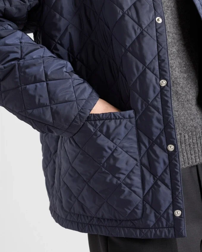 This Quilted Jacket with Contrasting Collar Stands out for Its Pragmatic Allure, Emphasized by the Innovative Character of Re-Nylon. For Sustainable Care to Preserve the Product’s Characteristics and Reduce Microfiber Shedding, We Recommend Not Washing the Item Too Often. Let the Product Air out After Every Use and Have It Dry Cleaned at a Specialized Ecological Dry Cleaners.