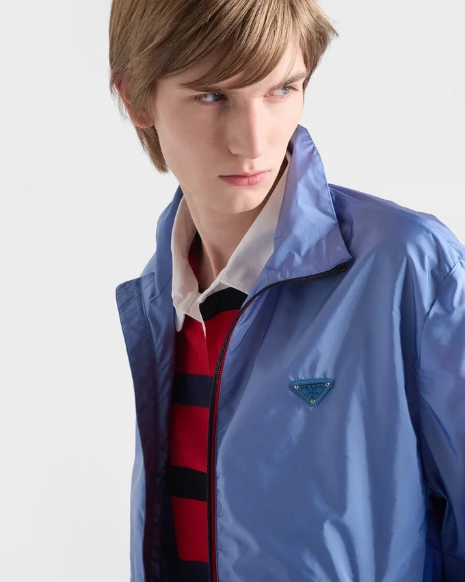 This Jacket Made of Re-Nylon Combines Minimalism and Functionality. The Sleek Silhouette Transforms the Pragmatic Simplicity of Sportswear in an Expression of Contemporary Style. Graphic Details in a Contrasting Color Complete the Style Decorated with the Emblematic Enameled Metal Triangle Logo. For Sustainable Care to Preserve the Product’s Characteristics and Reduce Microfiber Shedding, We Recommend Not Washing the Item Too Often. Let the Product Air out After Every Use and Follow the Washing Instructions on the Label.